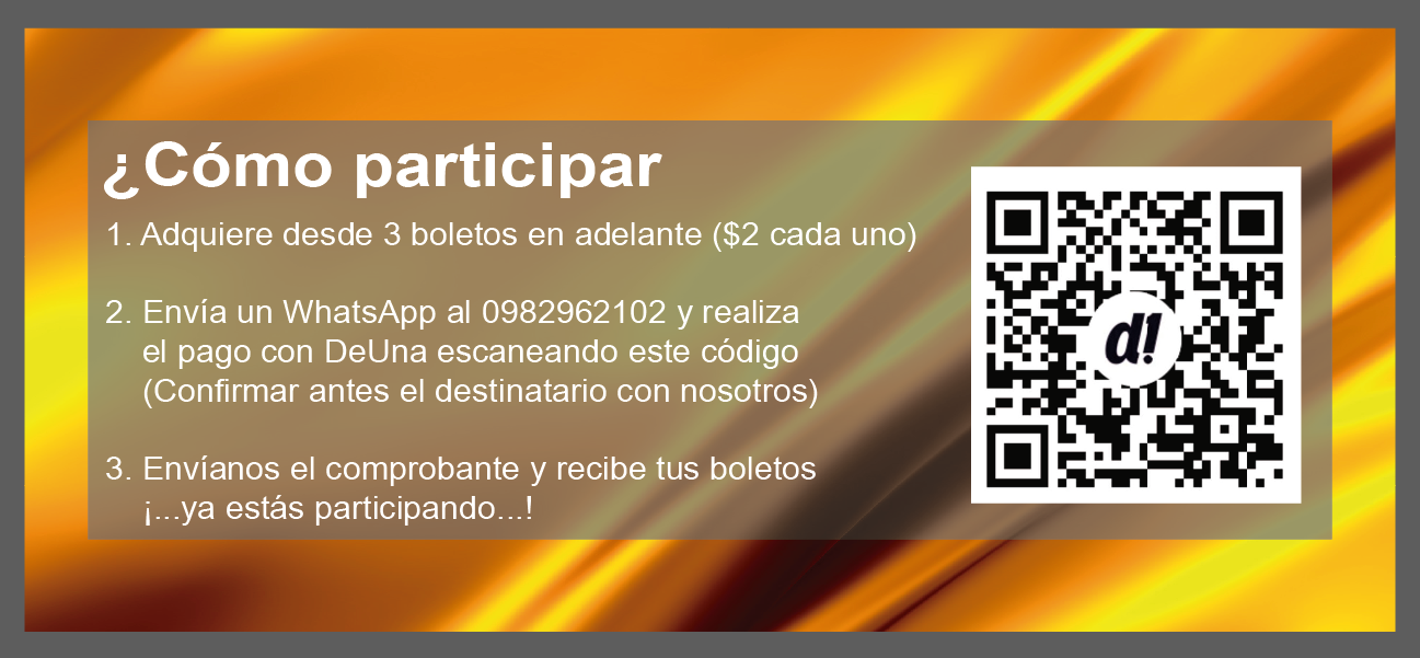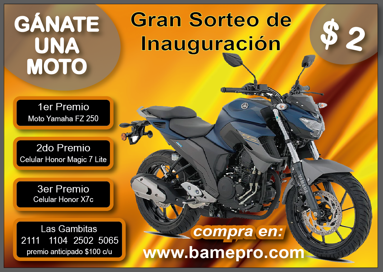 Este sorteo cuenta con el respaldo de la compañía BAMEPRO S.A.S. Los boletos son asignados de manera aleatoria por el sistema y no se repiten, los números de sus boletos serán enviados vía correo electrónico y WhatsApp®, el sorteo se realizará una vez estén vendidos todos los números (100%) y se realizará en presencia de Notario Público, los ganadores serán contactados por el equipo de BM Motores para acordar la entrega-recepción de su permio, excepto las gambitas que son entregadas inmediatamente al salir favorecido mediante transferencia bancaria. Llámanos ya al 0982962102